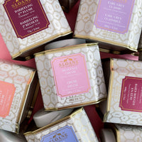 Our Signature Caddies are where it all began, custom designed to perfectly reflect the beauty of what you will find inside. Each tin is filled with whole leaf loose leaf tea, sealed tight with an airtight plug and lid.